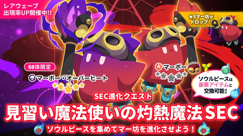 2025年9月27日からSEC進化クエスト「見習い魔法使いの灼熱魔法 SEC」が開催されます。EXを超える高難度SECクエストでイベントモンスター「マー坊」を進化させましょう。